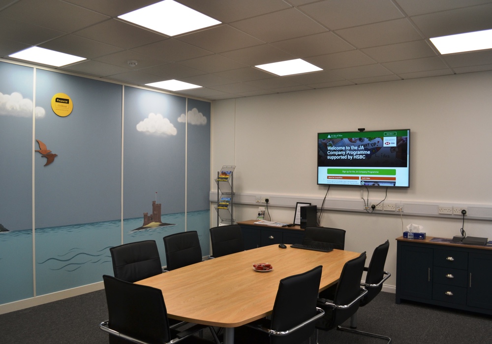 The wall is located in the training facility of the Junior Achievement offices in Mount Havelock, Douglas and will be seen by everyone who uses the facility.